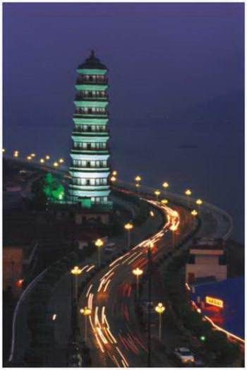 崇禧塔在端州区塔脚路,始建于明万历十年(1582)。崇禧塔之名,取“文运兴旺”、“鸿福无疆”之意,当初建塔是为聚集人气,期望人材辈出;而且建此塔可镇住“河妖祸龙”,避免水灾,一举两得。 塔为楼阁式穿壁绕平座砖木塔,高57.5米,平面八角形,外观九层,内为十七层。石砌须弥座的八个角均有形态各异、造型生动的精美雕刻,是明代石雕艺术珍品。每层塔檐均用绿色琉璃瓦铺盖,檐角悬挂着风铃,铃声嘹亮悦耳。从乾清门进入塔内,循级登塔凭栏远眺,四周景物尽收眼底。塔刹用铁铸的覆盆、宝珠及紫铜葫芦装置都金碧辉煌。当代名书法家赵朴初曾为塔题书“崇德塔”匾额及撰书“七垦高北斗,一塔耸南天”楹联。