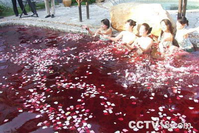 中药谷以宫廷沐浴文化为背景,全面展示盛唐时期的宫廷沐浴风情,以及宫廷沐浴养生秘趣,在幽雅、舒适的环境中享受精心配置的药浴,感受博大精深的中华儒、道、佛等文化所体现出来的"心平"、"无为"、"静以养身"的魅力。中药谷设有泡浴区:室内、外30余种各种不同功能中药池;观赏区:水上大型唐式沐浴情景表演、锦鲤观赏、中药种植、园林小景等;保健区:蛋滚等特色按摩、中医咨询、豪华客房、干蒸湿蒸;药膳馆:各种特色保健食品;娱乐区:棋牌、健身……