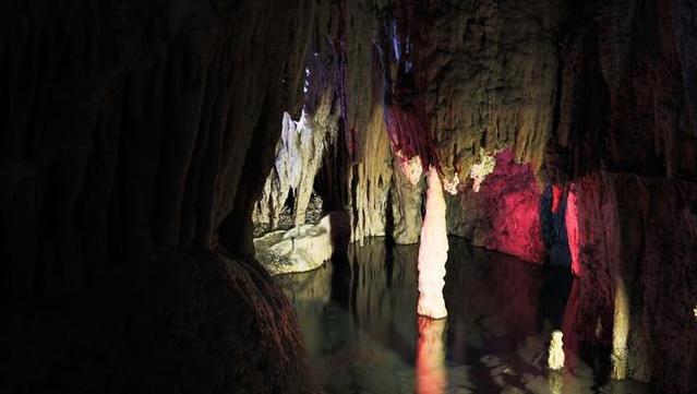 进入洞内,大自然的鬼斧神工一幕幕呈现在眼前,一个个惟妙惟肖的景致瞬息变幻……洞外有天洞中有洞的洞中厅堂纵横交错,让人遐想。 洞内景致千姿百态,景观奇异,洞穴窍妙。而纷杂林立的无数奇异石柱和许多幽静的钟乳石,奇异多彩,巧夺天工。洞中冬暖夏凉,水境环碧、青龙吐翠,乳石嶙峋,十分雄奇,蔚为奇观。