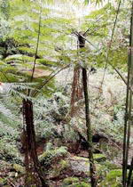 这里的桫椤数量多达4万余株,种群分布集中,生长良好,结构典型,类型多样,以树形优美多姿、苍劲挺拔而蜚声海内外。双株并生桫椤、主干双叉、三叉等奇异株型桫椤随处可见,被科学界誉为“桫椤王国”。这里山高谷深,重峦叠嶂,保持着较为良好的原始生态环境。桫椤数量更多达4万余株,结构典型,类型多样,树形优美。