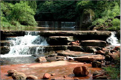 中国丹霞谷深藏于绿色林海之中,九沟十八岔涧谷纵横,山原逶迤,林莽苍苍,千峰竟秀,碧水萦绕。嵌入群山之间的条条沟谷叠翠千丈,浓荫蔽日。一根根红色石柱在浓绿中拔地而起,傲视林层;一块块巨大厚重的红层丹崖,色彩斑斓、幻影重重,拟人拟物,栩栩如生。瀑布跌水隐匿于青山翠谷之中,宛如铺在绿树丛中的一张张网,悬挂在红岩之上的一道道帘,散发出高山流水的悠悠情思。深邃幽静的峡谷曲流,千奇百怪的峰林石柱,神奇灵秀的丹霞洞穴,形成神奇而美丽的“峡谷大观园”。