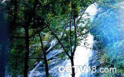 百花瀑布是百花岭旅游区的特级景观、是游客观赏的主要景点。百花瀑布是全国落差最大的瀑布之一,落差高度达300米,巨瀑分三级跌岩下泻,其声喧哗,其色肤白,其势磅礴,蔚为壮观。若在瀑布下面昂首仰望,那瀑布如“哈达”从两棵古树之间贴绝崖峭壁飞泻而下,随风飘来的水花雾气,轻轻舔游者的手脸。