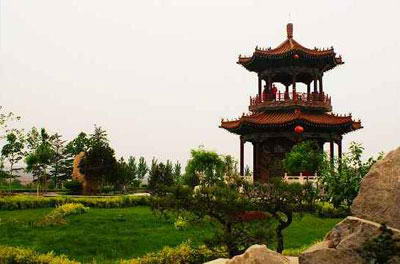 一、文化园区:高达15.6米的牌坊和长达30米的影壁式碑廊。凸现了全园的文化主题和建园宗旨。牌坊正面上书两幅对联:“八百里太行立地顶天看西峙峻极 东卧紫金北驾云岭南矗鼓峰煤田铁海灰石玄岩四围林果九野粮棉凡物宝天华皆出山川怀抱里;七千年文史源远流长想赵倡合纵隋讲太学宋逐中原明建古城奇谋异策武 勇文廉一时龙风百代典范数人杰地灵都在英雄画图中”。