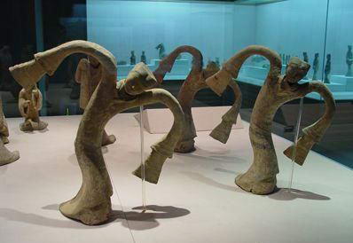 (2)赵文化。战国时期邯郸是赵国的都城。陈列集中反映赵国政治上开拓进取、经济上的冶铁中心地位、军事上胡服骑射改革和以音乐舞蹈为特色的文化风韵。