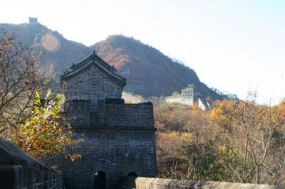 以长城为界,长城南的那子峪村,归抚宁县管辖,长城北的那子峪村归青龙县管辖。大轿车笨,土路上耍不开,载50多人停在南那子峪村外煤窑旁;中轿车灵活,走土路穿南那子峪村过长城,停在北那子峪村口。我坐在中轿车里,下车之后,32人跟着领队老张奔村西头路口,向西南的长城走去。