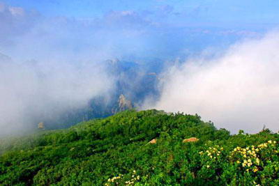 六月份,是古生代遗留、国家濒危植物天女木兰盛开的季节,四面八方的游客云集于此,只为一睹天女木兰的芳容。紧随其后,锦带花、紫丁香、八仙花、东陵绣球,把自己美丽的倩影从浓浓绿色中伸展出来,五彩缤纷的祖山花竞相开放,姹紫嫣红,争奇斗妍,使祖山成为一座名符其实的天然大花园。