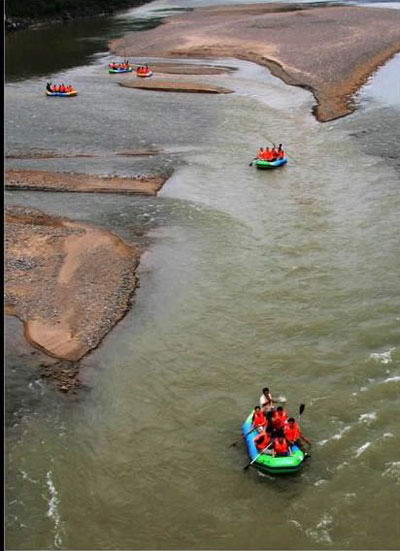 伊河漂流全程17公里,为国内自然漂流最长河段。全程分为两段:森林漂3公里,设有水仗区、鼓浪区、游泳区、水上餐厅,开设国内首家夜晚漂流。春日,绿树鸟鸣,夏天,浓荫清风,金秋,黄叶飞扬,冬季阳光沙滩,放舟其中,给人一种轻松、明快的感受,如春燕展翅飞翔。大河漂全程14公里,时而浅滩急流,时而幽潭碧波,人行其上如箭行空中、荡舟西湖,那份刺激如钱塘观潮。累了躺卧沙滩,饿了采果林中,唱歌对阵,家人嘻闹,其乐融融!