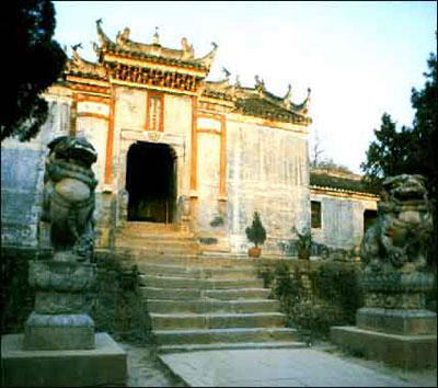 古隆中的武侯祠,系明代重建,并在嘉靖,万历及清康熙时重修,乾隆时定名为“汉诸葛丞相武侯祠。武侯祠系四进三院的四合院建筑,山门以高矗的仿木结构砖雕牌坊构成。祠内建筑多采用木步架与硬山砖墙组合,屋脊多施雕饰,其风貌在朴实素雅中又显得多姿多彩,具有浓厚的地方风格。祠前有石狮一对,造型十分生动,雕作极其精美,须弥座式的基座上还有奔马,舞风等浮雕,具有很高的艺术水平