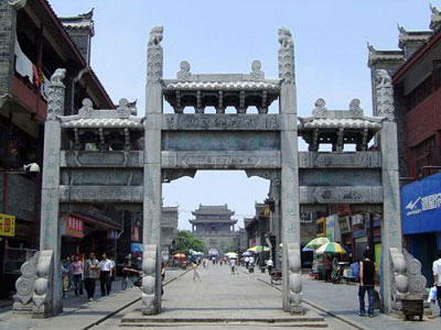 万历四年,知府万振孙为六门首提雅称,分别为:阳春门,文昌门,西城门,拱震门,临汉门,震花门。因西门是朝拜真武祖师庙的必经之路,故又称为“朝圣门”。