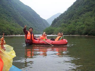 龙王峡漂流惊险刺激,在8公里的河道中,激流险滩和平整如镜湖的湖面交错布置,橡皮艇时而在急流中飘忽不定,时而在湖面上随风飘荡。水道时而狭窄,时而开阔,橡皮艇顺流而下,避巨石、绕暗礁、冲激流,溅一江绿水,洒一路欢笑。常常是在激流过后,刚在平静的水平上休整片刻,前面又来一个大落差,让游客迎接一次又一次激动人心的挑战。