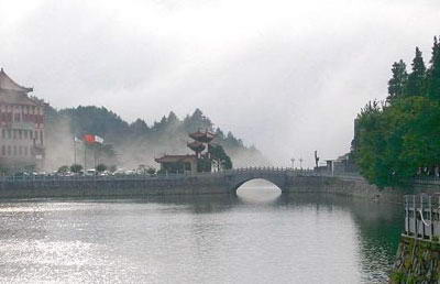 云中湖,是云绕雾缭之湖,因其高在峰顶耸入云表天际,常有雾团飘于湖面中,故名云中湖。因白云浮于水面一触即起,又有“吻天湖”、“天心湖”等诗情画意之名。云中湖是九宫山风精萃之地,位于海拔1230公尺的凤凰岭上,湖面百多亩,蓄水量一百多万立方米,最深处35米,是国内高度仅次于新疆天山天池和长白山天池的高山湖泊,也是我国高山湖泊中的姣姣者。