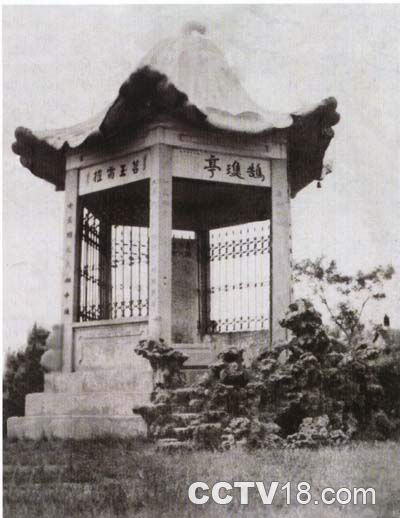 该亭形制极为罕见,颇具科学和艺术价值。亭高6米,6方,边长3米,6根30厘米直径的花岗石柱托以圆墩石坊,上面1.3米高的六角飞檐亭帽由水泥现浇而成,“帽沿”彩绘鱼龙花鸟等。亭内立有30根花岩石柱直通亭顶,人不可入,内伏青石龟。龟背上有—2.5米高、1米宽的石碑。