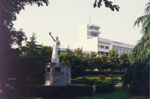 “中心”地处沃野,花木扶疏,精舍飞翠。镶有杂交水稻徽标的淡绿色科研大楼鹤立群房。楼前的雪松、桂花、冬青簇拥着一座3米多高的乳白色塑雕:她是位年轻的母亲,左手高护着肩上的孩子,右手托着欲飞的和平鸽,象征着杂交水稻对人类生命与世界和平的非凡意义;座基西、南两面嵌镶着国际水稻研究所赠送给中心的两块铜匾。