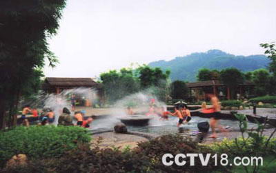 山庄环境得江山之清幽宁静,享自然之绚烂多资。山峰隽秀挺拔,林木葱郁,风光秀丽,环境宜人,碧水环绕,神情气爽,山、人、游园、建筑与自然高度和谐统一,共同形成了一个风景如画、生机勃发的环境。山庄内设有温泉水疗中心,拥有水力按摩池、牛奶浴、啤酒浴、米酒浴、中药浴、花瓣浴等各式疗养泡池33个和光波浴、盐浴、石板浴、桑拿浴、太空舱等特色疗养项目,是人们疗养身心的度假胜地。