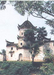 洋溪文昌阁位于新化县城西南15公里洋溪镇洋溪河畔,与新化五中毗邻,为巨石、砖、木结构,建筑面积约300平方米。阁有三层八角,角上嵌石舫、风铃,阁顶为颜色瓷宝鼎。门框有石刻,浮雕双龙取宝,雕工细腻,左右嵌碑文四块。阁后原有大成殿,置关帝、文帝塑像,阁上有颉师塑祖像,杞魁星司文衔;右室为岳忠祠,尚存空室。
