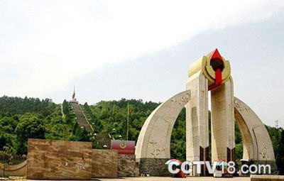 为了纪念英勇献身的韶山英烈,为了让现实永远记住历史,韶山人民在毛泽东诞生百年之际,建起了一座气势雄伟的韶山烈士陵园。烈士陵园位于清溪镇天鹅山,在韶峰东麓新辟了一条宽40米,长1020米的林荫大道,名叫英雄路。路北端与毛泽东青年时代塑像广场相接,南端即是陵园。陵园占地160多亩,可分九部分:门楼、泪飞泉、国旗台、烈士塔、毛家六杰铜像、六英亭、三烈士像、五杰亭、百杰亭。