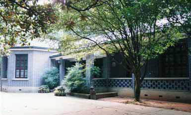 从拱门进去,只见古松遮天盖日,樟木苍翠欲滴,小鸟林间欢唱,微风迎面送来阵阵幽香。松山一号楼就在这里依山傍水而立,名为楼,实为青砖青瓦外表普通的平房。