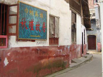 秋瑾故居位于湘潭市十八总由义巷。这位近代史上杰出的巾国英雄、妇女解放运动的先驱,在这里度过了8个春秋。离大码头不远处有一条宽敞的小巷叫由义巷,巷两旁墙高院深,大多是官绅富商之家,也开设了几家当铺、钱庄。进巷口十多丈远处,有一栋青砖青瓦麻石门楼的铺面,大门上首有一块汉白玉石刻招牌“义源当”,这是湘潭有名的义源当铺。