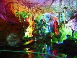 秦岩位于湖南省江华瑶族自治县县城沱江镇东南38公里的白芒营镇秦岩村秦山(吴望山),相传为秦始皇开疆屯兵之遗址,是江华八景中颇有影响的胜景溶洞,属喀斯特地貌。秦岩千资百态,胜景宜人。全长3.8公里,其中地下水路1000米,洞内约6.8万平方米,深洞蜿蜒曲折,悬壁高挂,石浆钟下乳,琳琅满目,全岩三个溶洞(即“桃源洞”,“水晶洞”,“天仙洞”),洞洞相连,景景奇妍。桃源洞中“玉鼠偷桃”、“玉犬望腊”、“石龙河马”……惟妙惟肖,栩栩如生。水晶洞中,泉水清澈见底,两崖石壁、钟乳,千姿百态,意境幽深。仙人洞中种种传说,则神秘莫测,令人遐想连篇。秦岩石刻有非常高的历史、艺术和科学价值。自秦至清以来,关于“秦岩”的传说故事,在湘南一带广为流传。