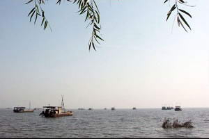 乌红天炀红泊湖,渔歌满湖鱼满船。