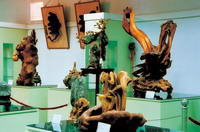 根雕艺术馆以根艺精品为主,辅以奇石、盆景、古玩,自成一体,颇具艺术韵味。
