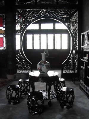 转盘楼亦称跑马楼、圜楼。原为薛氏家眷居所。是薛福成故居建筑群中规模最大,最富特色之处。面阔11间,在国内已知的同类建筑中体量最大。营建此楼时,薛氏运用进口设备加工了车木栏杆,楼上用进口木板隔顶。数以百计的灯饰采用了中国传统的吉祥图案,花式繁多。中外工艺和材料在建筑中水乳交融,充分体现了中西合璧的独特风格。解放后,曾长期为学校和居民所用。第一进东侧为按原样恢复的薛福成之子薛南溟卧室,西侧辟为薛福成生平事迹展览。