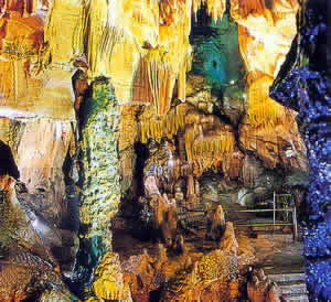 灵谷洞是一个巨型的灰灰岩溶洞。全洞面积8300多平方米,总长1200多米,内部呈180度不规则半圆形,最高处9米,最低处负6米。以"洞中有山,绚丽多姿"见长。有"灵谷天府"之美称。