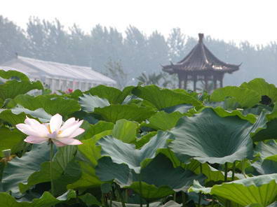 行进在前往水泗荷园的路上,一幅幅生动的画面不时地映人游人的眼帘:公路两旁的稻田里挂满了金灿灿的稻穗,圩堤边爬着又大又肥的螃蟹,湖荡里藕农们在墨绿色的荷叶下不停地淘藕。当游人踏进荷园,首先映人眼帘的是由江苏省书法家协会会员赵文澜先生书写在界碑上的遒劲有力的两个大字——“荷园”。“接天莲叶无穷碧,映日荷花别样红”。走在荷园桥上,便会使游人真正感受到自己已经与“中国荷藕之乡——宝应”亲密接触了。站在荷园岸边,放眼望去,眼前呈现出一片浩瀚的荷花荡。在耀眼的阳光下,万亩荷花荡的尽头则是碧绿—片。座落在荷花荡里的四座风车,风叶迎风转动,有着—一种执着不阿的精神,远远望去,好似四只巨大的河鸟在空中翱翔。田埂小路旁的芦苇、蒲草、睡莲等自然景观更是尽收眼底,妙不可言。