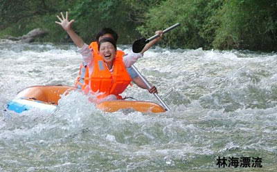 林海漂流:林海皮筏漂流是靖安森林生态旅游的精典娱乐项目之一,上起骆家坪景区茅山,下至九岭天崖山下的塘里,流经原始森林的的潦河自西向东蜿蜒而下,两岸山岩形状多样。在林海峡谷中漂流的人们便来了拟物象形的兴致,每每见到凌空而架、造型独特的一个天然石桥,学生物学的叫它“尺嫂洞”,好老庄的叫它“迎仙洞”,搞地质研究的叫它“天生桥”;见到崖畔上陡大的石柱,有航海经历的称其为“林海灯塔”,学历史的称其为“烽台”。总之,每一景致都引来千般说道,乐山乐水,见仁见智。林海河床为卵石细沙铺地,流水晶洼碧透,顺着宽绰的河道款款流淌,沿岸林海茫茫、巨藤悬挂,山光水色十分迷人。景区以清澈晶亮的泉水,险峻嵯峨的峰丛为主体,具有“雄、秀、幽、奇”自然特色。全程约12公里,落差近120米,是您娱乐观光,漂流探险的极佳期旅游之地。顺水漂流而下,途经38个弯道、16个急滩、16个清潭,一弯一景,被誉为“神水河“、矿泉河”、“爱情河”、“亲情河”,名震天下,历时2小时左右,在波浪中勇进,在清潭中荡漾,尽情领略大自然的恩赐,享受大森林的幽静与温馨。水清澈透明,步入景区,但见山羡水俏丽,水峦山环淌,整个景区幽而不闭、深而不险;河床卵石铺垫,一尘不染;水中鳌蟹结队,鱼虾自由遨翔;两岸悬壁藤蔓,古树临空舒展;深山古峡一派生机盎然。林海自助漂流回归自然,妙趣横生,有惊无险,是人与自然情深和谐一脉相依的绝世精典。