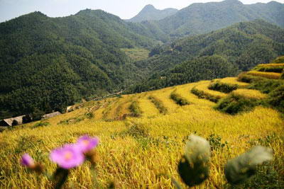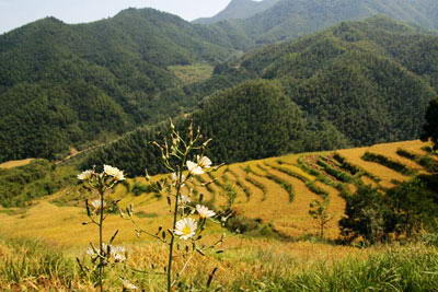 近年来谢坪村比较出名了,它的出名源于它那层层叠叠的梯田,谢坪村里号称剪刀峡的地方就有着那么多层层叠叠的,壮观的、漂亮的梯田。往山上走得越高,所看到的梯田就越美,只有从村庄的正上方往下看,才能看到梯田那那层层叠叠依山而上的气势和各种各样的形状。特别是刚插了秧的梯田在阳光的照射下说不出的美。走到一些稍平稍宽敞的地方就住着几户人家,只见房前屋后绿树成阴,几只狗儿和鸡们跟着我们边喊边叫,村里炊烟袅袅,一只只白鹭时不时飞上天空,真是一个世外桃园啊。
