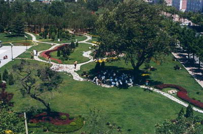 绿色是改造后的中山公园的主色调,公园内共新栽植各种大树和白皮松、樱花、水杉等观赏树木70种2万余株,使公园的绿化面积达到了10.2万平方米,做到了各个活动场所均被绿阴环抱。