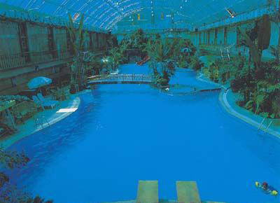 接待能力:宾馆可容122人;别墅可容283人;温泉游泳馆可容500人;夜总会可容100人。