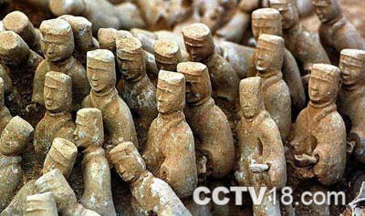 此次发掘,共发现汉代陪葬坑三座,其中一号坑为车马俑坑,二号坑是与墓主人生活有关的俑坑,三号坑除了石棺与木棺内的零星骸骨外,出土了一些陶壶、陶盆等器物。另外还发现了三四十枝箭头和一些不明用途的石丸。