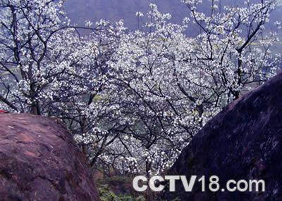 每年的阳春五月,熏风和畅,河岸绿柳垂杨萌发新枝,此时梨园万卉怒放,一片雪海银花,真可谓洁白比雪不逊色,婀娜较梅有异香,形成“丹崖春雪”的景观,这就是由位于蚬河与清水河交汇处的红土崖与河边梨园的大片梨花辉映而成。清代文人赵蜚声“千树梨花千树雪,一溪杨柳一溪烟”的佳句,这就是对梨乡美景的写照。每到梨花盛开季节,大批游人蜂拥而至,一睹梨乡这一独特风采,流连忘返,其勃勃兴致不亚于品尝茌梨的美味。