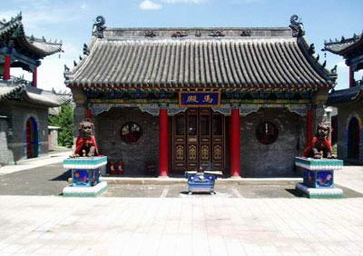 关公殿面阔、进深均为三间,前有廊子,并有砖铺月台,四周有石质栏杆,栏杆左右各有望柱四根,前有八根。题记为清咸丰元年重修。关公殿后有小式木作圣母殿、龙王殿、三义殿各三间,均系晚清建筑。山门有台阶十四阶,逐级而上,又有台阶八级,并有砖铺平台,四周有砖砌花栏。山门门额上书“关帝庙”,门前有照壁一座,石狮一座。