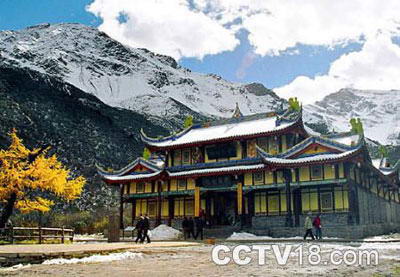 黄龙寺在松潘县城北35公里黄龙乡玉翠山麓,占地约500平方米,始建于明朝,属佛教寺庙。寺庙原有五殿,分别以灵观、弥勒、天王、大佛、观音名之,古朴雄伟,体现了黄龙景区内道佛融合的宗教文化特点。黄龙寺藏语称色尔错拉康,意为金海子寺庙,原称雪山寺,又名白鹿寺,明人马朝觐创建。后因此地有黄龙负舟助衙治水和黄龙真人修炼的传说,改为现名。
