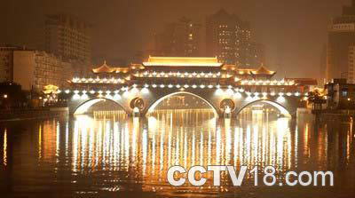 安顺廊桥位于府南河交汇口南河上游135米处,横跨南河,桥跨主体长81米,宽23.6米,于1996年在原古安顺桥旧址基础上重建,是一座集历史、文化、商贸、餐饮、行人功能为一体的景观桥,取“天上鹊桥,地上廊桥”之意命名。你可以在桥上尽情观赏以唐诗宋词为主题的大型浮雕,梯式水景及“桥上桥下共流水”的绮丽景观,亲临“廊桥相会”的爱情之旅。