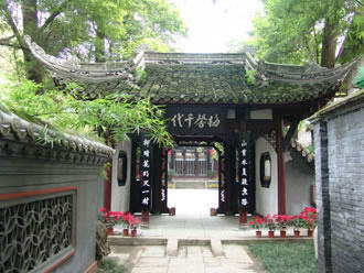 梅馨千代陆游祠 陆游毗邻罨画池,为纪念曾任蜀州通判的爱国诗人陆游而建。占地面积约4亩,建筑面积900多平方米,是省级重点文物保护单位,也是除陆游家乡浙江绍兴外,全国仅有的纪念陆游的专祠。陆游曾两次出任蜀州通判。在蜀州期间曾多次游览州中山川名胜,写下100多首寄怀蜀州的诗词,抒发他一腔忧国忧民的赤子情怀。