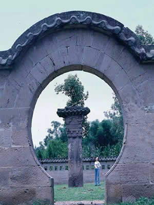 沈府君阙位于汉碑乡碑亭村。是渠县6阙中唯一双阙幸存者,东西阙相距21.62m,阙高均为4.84m,皆为青砂石制成,形制及雕刻手法与冯焕阙相似,亦为仿木建筑结构。阙建造于东汉安帝末延光年间(122—125年),略晚于冯焕阙。
