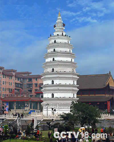 报恩塔,俗称“白塔”,四川省文物保护单位,位于泸州城区。建于南宋绍兴十八年(1148),明弘治年间、清光绪四年、1985年三次维修。塔坐西向东,砖石结构,双檐七级楼阁式,通高33.2米。塔身呈八边形,层层上收,107级踏道经塔心盘旋至顶,塔内90龛256尊深浮雕石刻造像,人物线条流畅,栩栩如生。塔基为八边形,边长4.1米。底层4.5米,檐下砖砌仿木斗拱,第二、三层檐下有负重鸟兽类雕塑,保存完整。塔为泸南安抚使冯楫为报母恩而建。