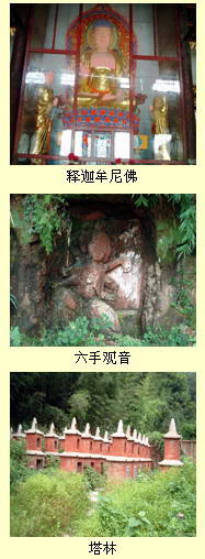 寺周环山,每当风扫晴岚,松摇滴翠,步行曲径,顿觉心灵为之净化。著名的象鼻山、象耳山、擦耳岩等拱卫寺前,植被繁密、风光清丽。山麓湖水一弯,波光潋滟,可供游人荡舟。