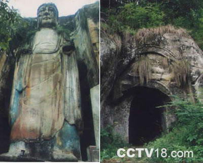 大佛两侧有石如龙虎,右侧有石刻观音像一尊。清嘉靖初年,地方政府为抵御白莲教起义而开凿了一巨型石洞,主洞口距大佛右三十米。石洞长100多米,遗存有石床、石灶、粮仓、厕所等。
