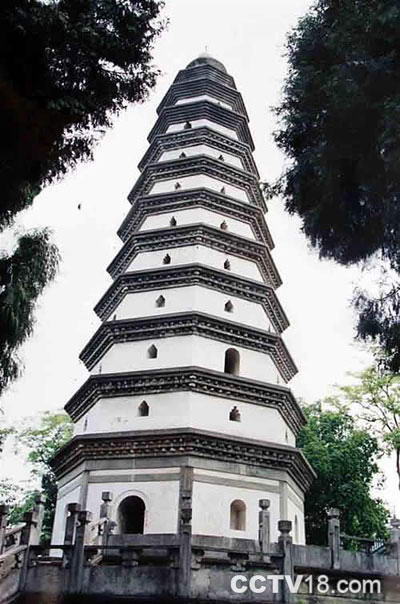 阆中白塔建于明代,共十三层,高二十九米,外十二层,内六层并有螺旋梯道九十一级供人登临绕窗远眺,环形观揽阆中风物。