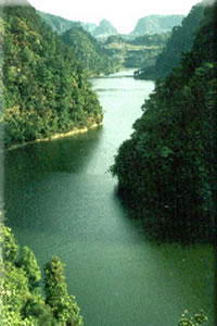 长沙湖风景雄奇秀丽,深幽险峻,游人到此,莫不留恋忘返。“溢洪飞瀑”于夏秋季可见,湖水从十多丈高的坝顶飞流直下,水声轰鸣不绝,水雾蒸腾四溢,场景十分壮观。