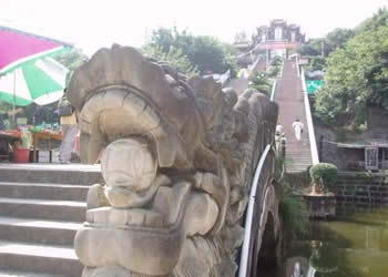 由“步步高”升上去,山腰路两条、山顶路一条。由中间的一条登上去,塔堂殿宇,巍峨壮观,是山的制高点,有登云寺、罗汉堂、白塔、二十四孝堂等建筑,被称为宗教活动区。