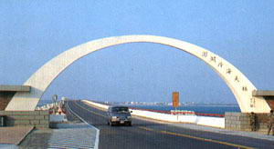 跨海大桥横跨白沙、西屿(渔翁岛)两大岛屿,造桥的工程技术与材料全部自行研发,曾是远东最长的深海大桥。