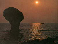 东港开来的船驶进白沙港前,远远就可看到矗立滩边、高约9公尺的花瓶岩,俨然是小琉球的守护神。花瓶岩是块上宽下削的珊瑚石灰岩,因长期受海水冲蚀,形成今天头大脚细的外观;岩顶上还长有青青草木,远看就像插了花草的花瓶,也有人称它“毛菰岩”。