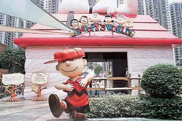 沙田的新城市广场亦开了全亚洲首个户外史诺比乐园。这个史诺比世界占地四万平方叨,是全世界有最多<<花生漫画>>公仔的户外乐园。一共分六区,包括史诺比大屋、花生校园、垒球游乐场、史诺比休息廊、花生大道和独木舟探趣。