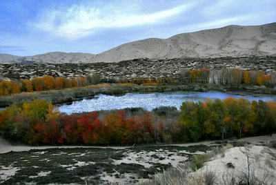 白沙湖位于一八五团三连海拔650米,被称为“沙漠奇景”的白沙湖,金秋十月,似一幅巧夺天工的天然画卷,碧波荡漾,野荷浮面,接天莲叶,芦苇荡荡;湖岸高大茂密挺拔的银灰杨、额河杨、白杨、白桦、红柳、野山楂、野石榴、绣线菊、爬地松层林尽染,红、黄、白、绿树相互映衬;湖面如镜,波光粼粼,湖光山色,远眺近览,气象万千;金黄的沙漠在阳光的照射下,散发出阵阵的清香,令人陶醉;五彩植被倒影水中,层层叠叠,交相辉映;野鸭、鸿雁游弋其中,灵气顿生;无论从哪个角度看白沙湖,都有异样的景观,让人恋恋不舍,醉然其中,疑是江南美景,成为国内外探险旅游者、摄影爱好者的乐园。
