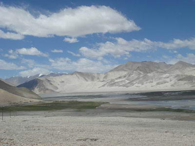 白沙山位于柯孜勒苏自治州阿克陶县境内,距布——喀旅游公路直线距离不到两公里,这里不仅有大面积的沙漠丘陵,还有连绵起伏的沙山,最为奇妙的是,这里的沙漠和沙山都是白色的。在沙漠的中部,两个天然的沙湖就像两个明镜在沙漠中闪闪发着亮光。在湖的四周,长满了各类野生沙漠植物,堪称天然的沙漠植物园。